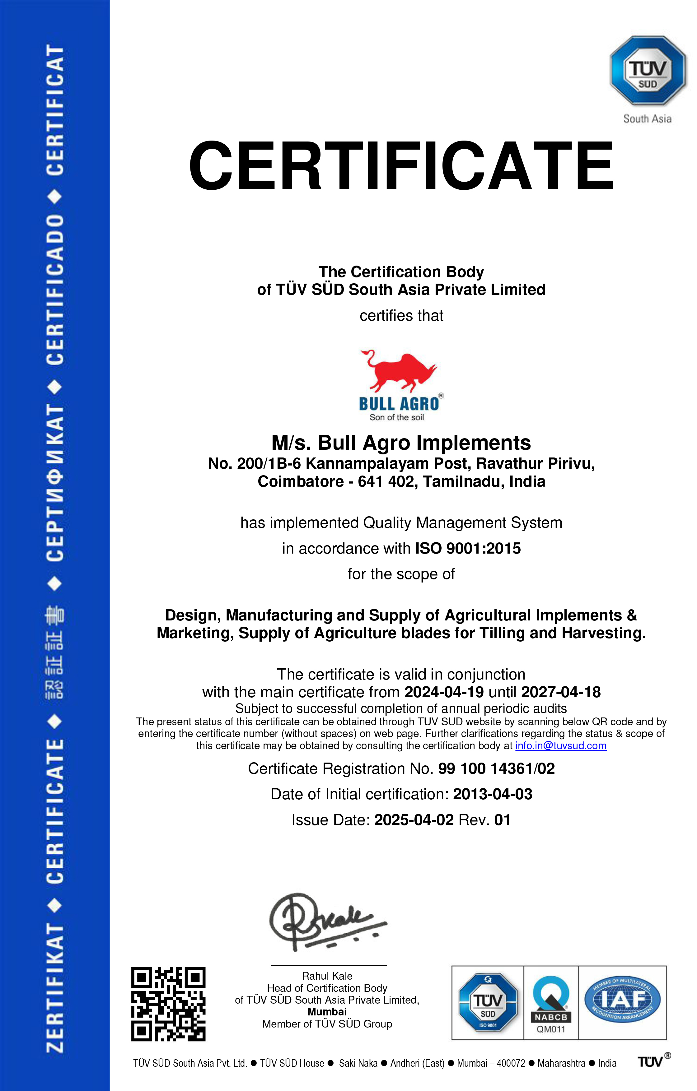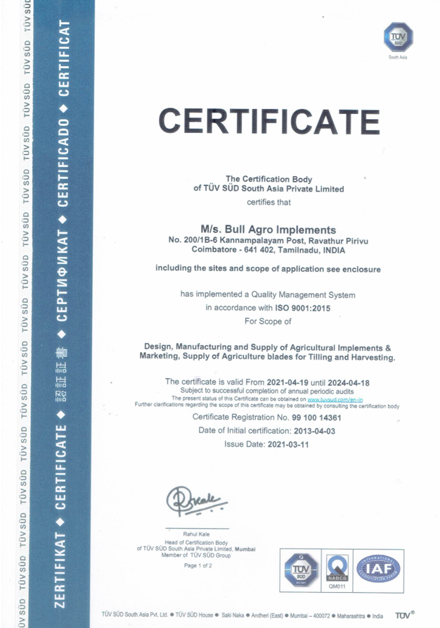 As we navigate the dynamic landscape of the agricultural industry, our commitment to quality remains unyielding. We are dedicated to not only meeting but exceeding the expectations of our customers. Our ISO 9001:2015 certification is a testament to the stringent standards we uphold in every aspect of our operations.
